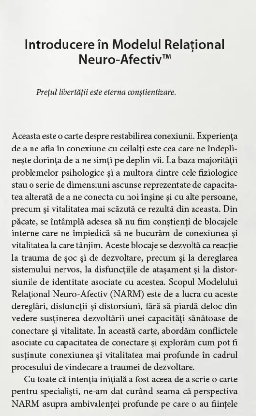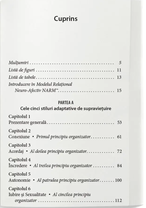 Deși poate părea că oamenii suferă de un număr infinit de probleme și provocări emoționale, Laurence Heller și Aline LaPierre, autorii cărții de față, susțin că cele mai multe dintre acestea pot fi reduse la cinci principii organizatorice fundamentate biologic: nevoia de conectare, acordaj, încredere, autonomie și iubire-sexualitate.