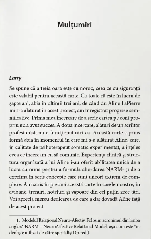 Heller și LaPierre prezintă Modelul relațional neuro-afectiv – NeuroAffective Relational Model™ (NARM), o metodă care integrează abordări de jos în sus (ascendente) și de sus în jos (descendente) pentru reglarea sistemul nervos și rezoluția distorsiunilor identității, cum ar fi stima de sine scăzută, rușinea și auto-judecata cronică ce rezultă din trauma de dezvoltare și relațională.