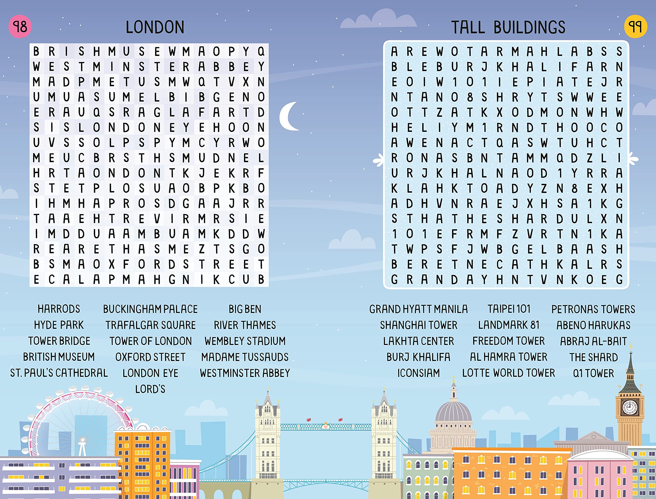 Packed with fun wordsearches about travel, people and places, from capital cities and famous landmarks to modes of transport.