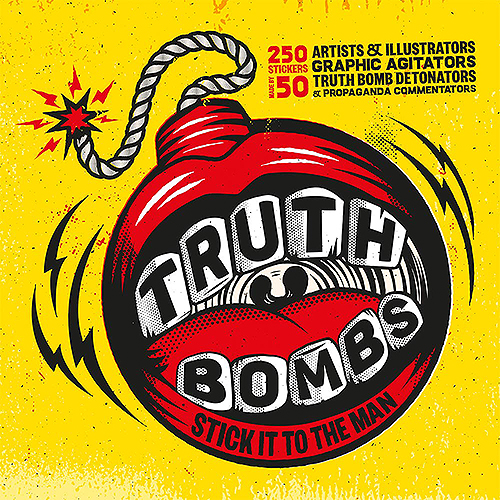 An explosive collection of over 200 full colour die-cut stickers created to make a statement “A truth bomb”, according to the Urban Dictionary “is a fact or piece of knowledge that, when told to a listener, is devastating to the listener's argument or world view.” Well in this case, The Man should prepare to be hit right between the eyeballs and mind blown apart by a global underground coalition of artists, illustrators, pop-culture pirates, graphic agitators and agent provocateurs, protesting the wicked ways of the world. How you spin each sticker gives it the magical personal touch. Let us commodify your dissent and we guarantee that your resistance will be spectacular.