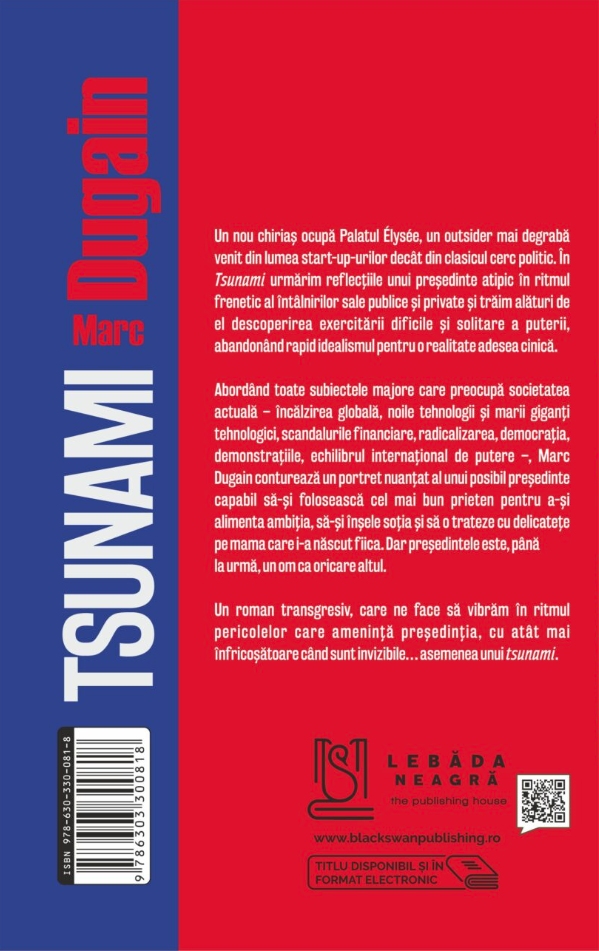 Un roman transgresiv, care ne face să vibrăm în ritmul pericolelor care amenință președinția, cu atât mai înfricoșătoare când sunt invizibile… asemenea unui tsunami.