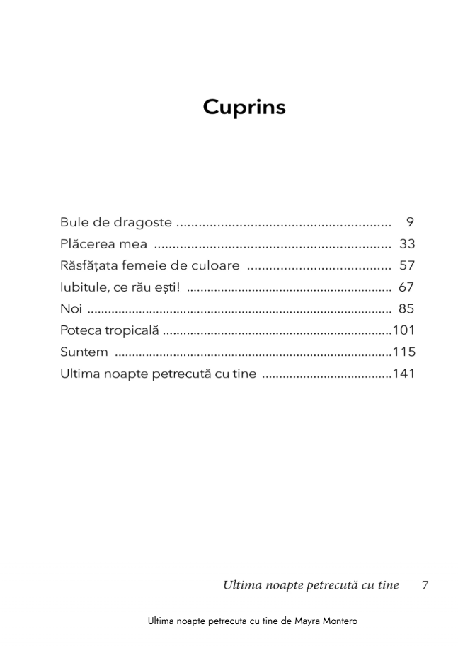 Celia si Fernando, cand fiica lor se casatoreste, decid sa faca o croaziera prin Caraibe in incercarea modesta de a-si recupera o intimitate decimata de mult de rutina conjugala. Calatoria prin insulele de vis, care ascund totusi mistere ciudate, incepe, ca toate croazierele, in ritmul dulce al bolerourilor, care dau titlul, nu doar cartii, ci si fiecarei „escale” a romanului.