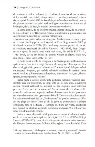 Valoroasă în toate privințele, de la calitatea traducerilor la profesionalismul comentariului critic, integrala „Shakespeare” în varianta Volceanov se anunță a fi un eveniment cultural de excepție.