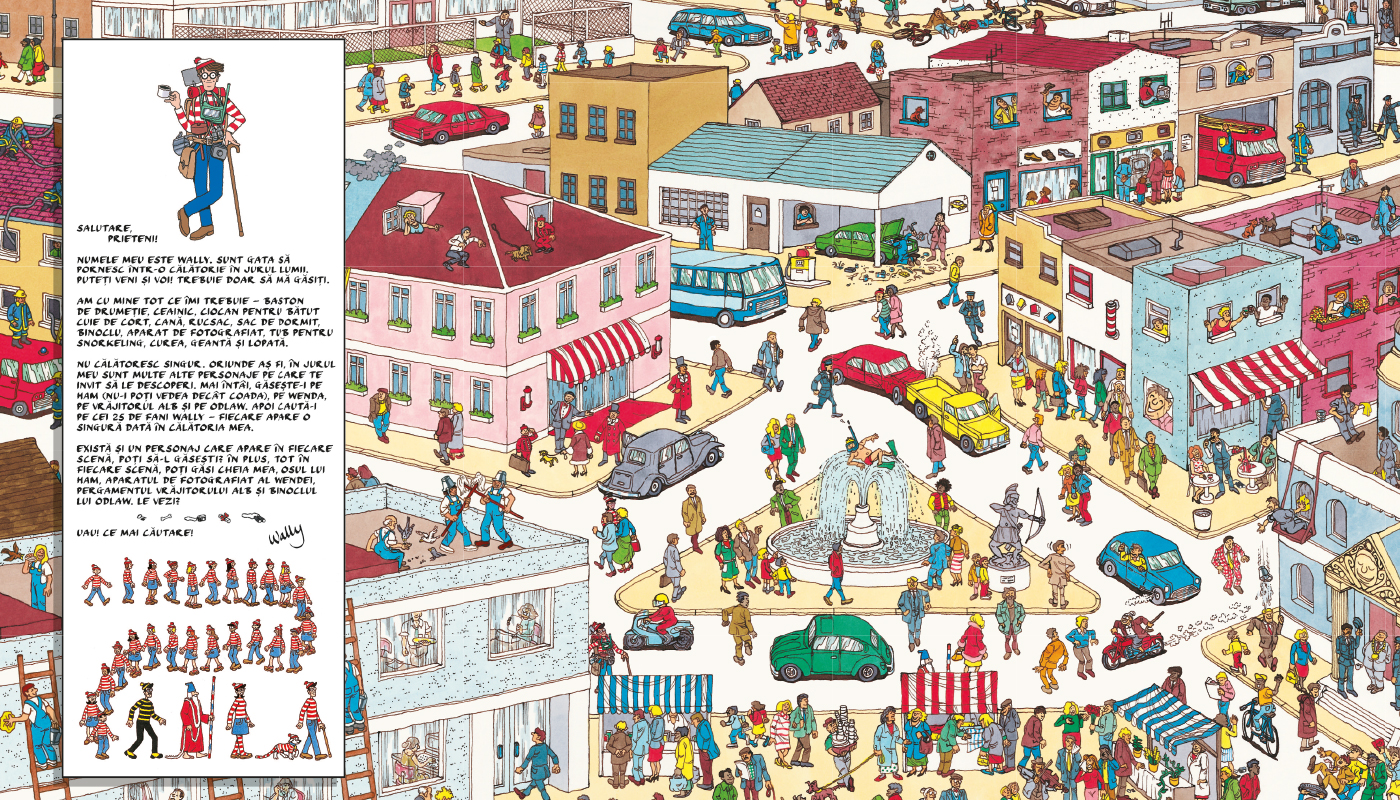Salutare, prieteni! Numele meu este Wally. Sunt gata să pornesc într-o călătorie în jurul lumii. Puteți veni și voi! Trebuie doar să mă găsiți.