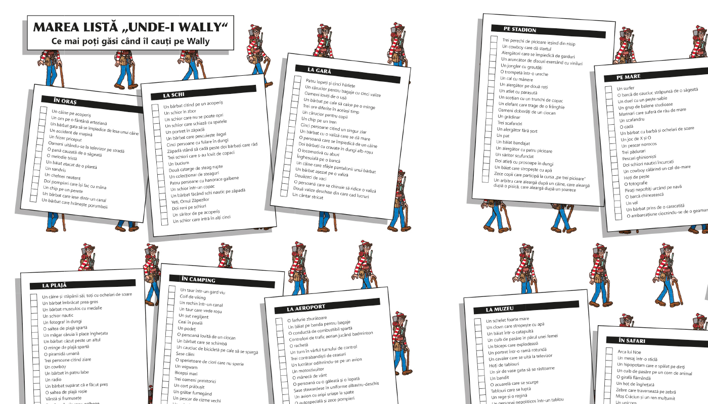 Nu călătoresc singur. Oriunde aș fi, în jurul meu sunt multe alte personaje pe care te invit să le descoperi. Mai întâi, găsește-i pe Ham (nu-i poți vedea decât coada), pe Wenda, pe vrăjitorul alb și pe Odlaw. Apoi caută-i pe cei 25 de fani Wally – fiecare apare o singură dată în călătoria mea.