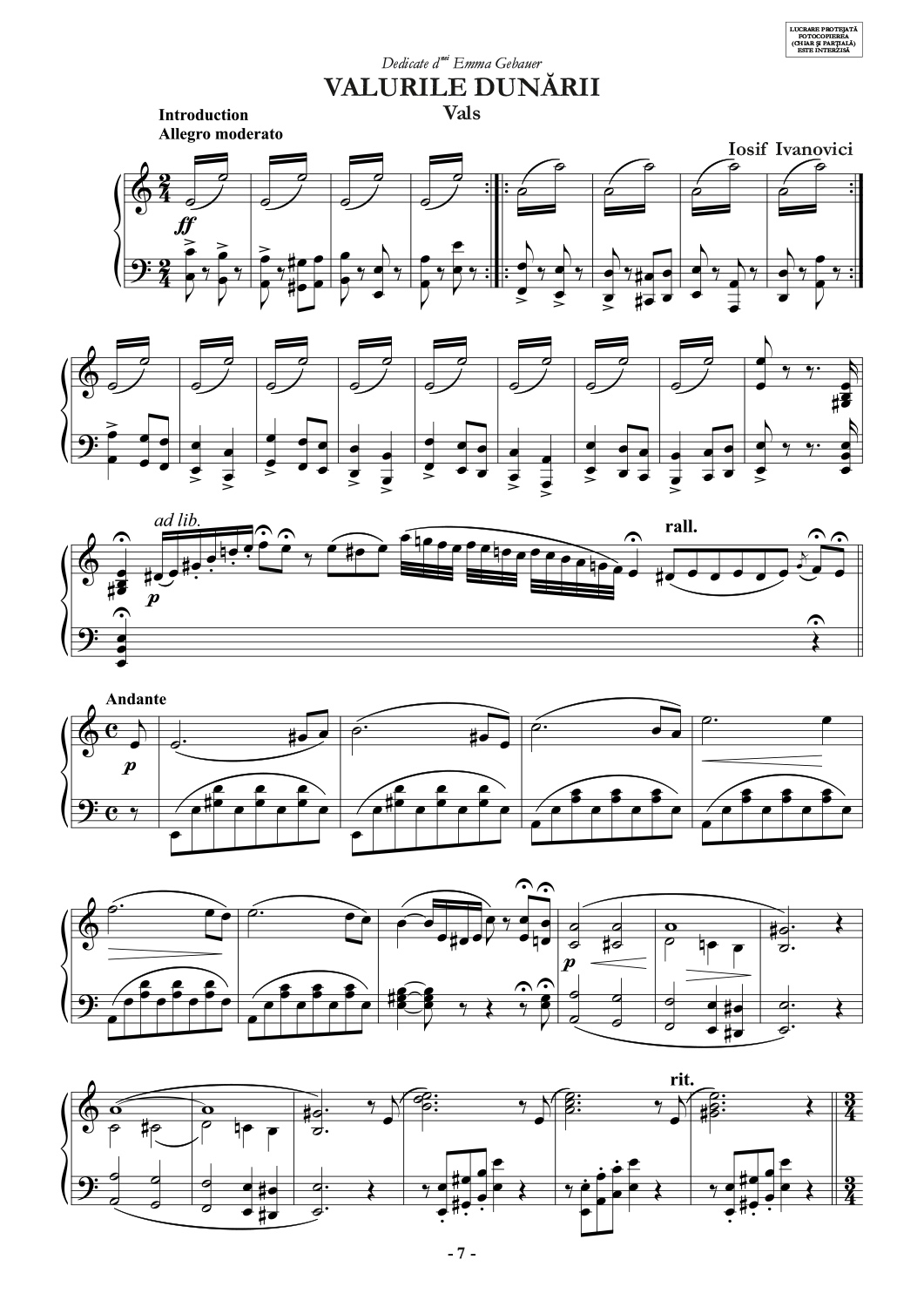 Valurile Dunarii pentru pian