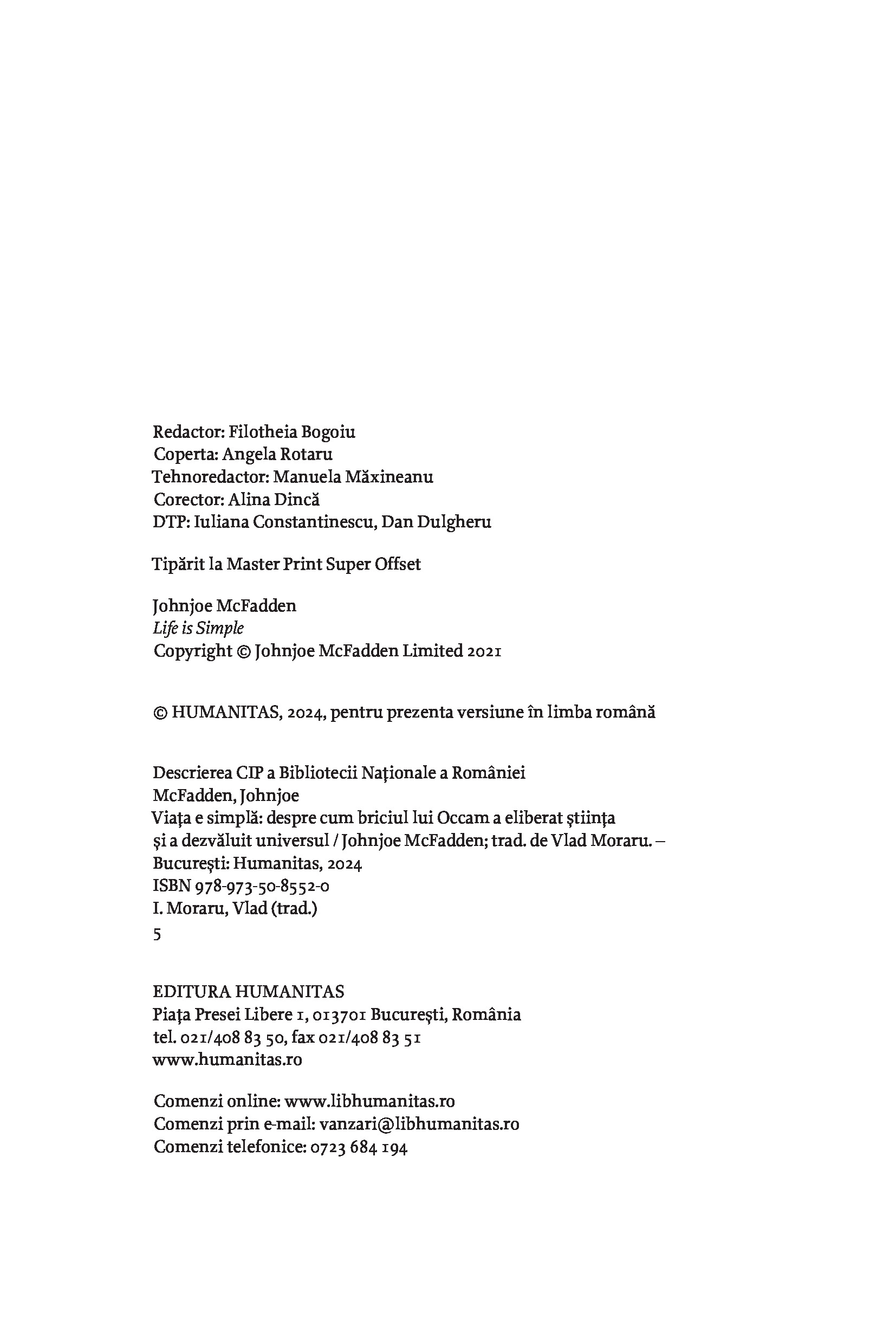 În Viața e simplă, Johnjoe McFadden atinge câteva performanțe cu totul remarcabile. Îi reușește, întâi de toate, o reconstituire plină de viață și de culoare a unor vremuri, evenimente și personaje pe care ni le reprezentăm îndeobște schematic. Apoi, urmărind de-a lungul secolelor impactul principiului simplității asupra științei, McFadden ilustrează excelent relevanța, neglijată adeseori în prezent, a fundamentelor culturale și filozofice ale discursului științific.