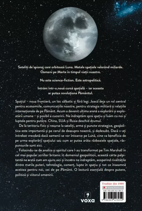 O perspectivă fascinantă și crucială asupra felului în care vom fi influențați de geografiile spațiului pe măsură ce omenirea urcă spre ultima frontieră. Marshall a comis -o din nou! -- Prof. Lewis Dartnell, autor al volumului Evoluția omului. Cum a modelat biologia umană istoria lumii