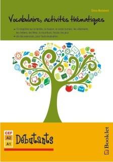 Vocabulaire, activites thematiques: se adreseaza elevilor de nivel pre-intermediar (A1-A2 in cadrul CEFR) care doresc sa se exprime usor in limba franceza de zi cu zi, folosind un vocabular tematic bogat si variat. Lucrarea este conceputa sub forma unui caiet de lucru organizat in jurul a 13 teme esentiale precum familia, profesia, casa, vestimentatia, corpul omenesc sau anotimpuri si sarbatori, ce ii antreneaza pe cititori in activitati de asociere, elimina intrusul, adevarat sau fals, rebusuri, ghicitori si intelegerea textului scris. In plus, elevii sunt incurajati sa se angajeze in dialoguri si dezbateri in care sa foloseasca vocabularul invatat. In scopul autoevaluarii, activitatile sunt insotite de exemple relevante si suport grafic, iar majoritatea exercitiilor au rezolvari la finalul cartii.