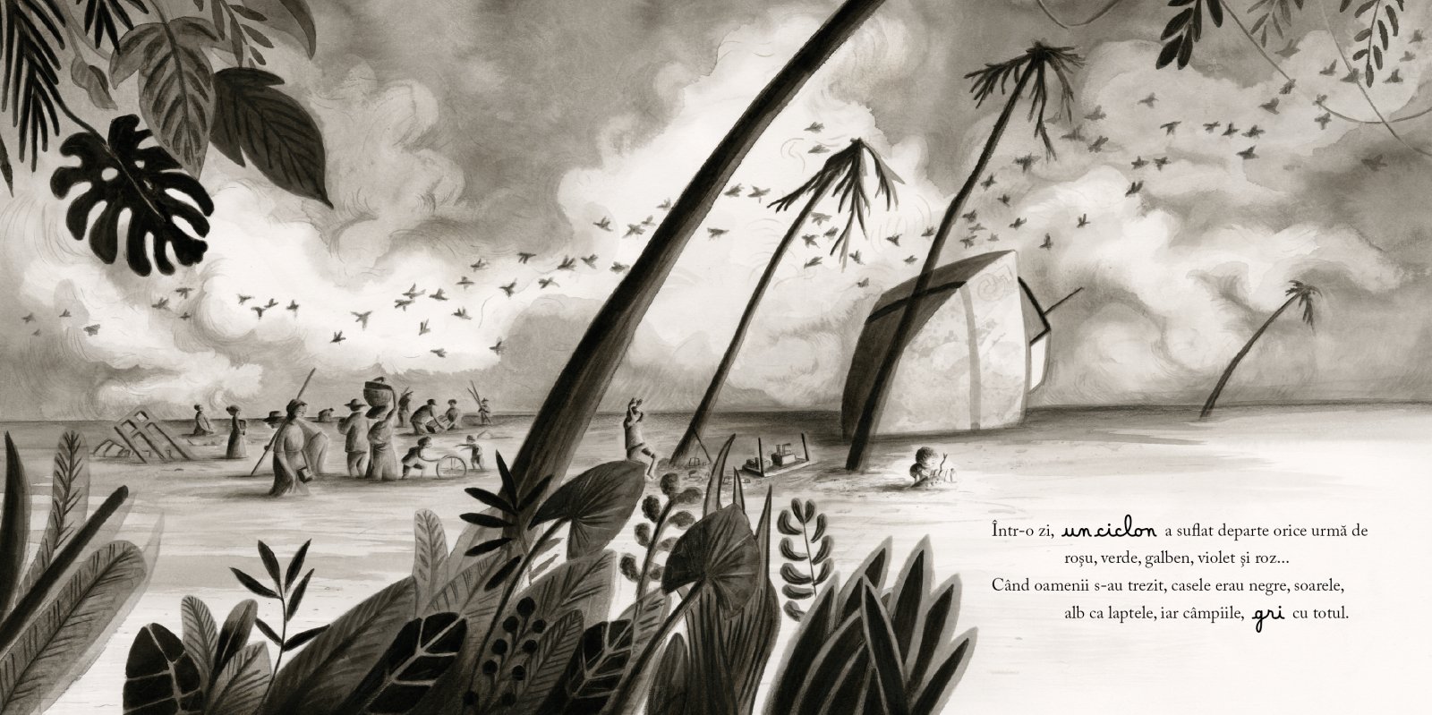 După un ciclon, țara în care locuia Nina și-a pierdut culorile și, peste noapte, totul a devenit gri. Într-o zi, în timp ce săpa o groapă în pământ, Nina a dat peste o cutie cu creioane colorate, care va schimba viața întregii țări.