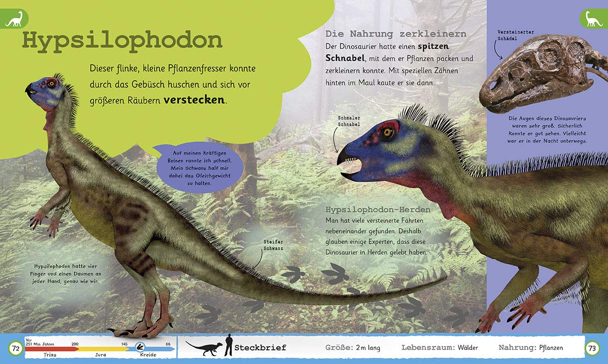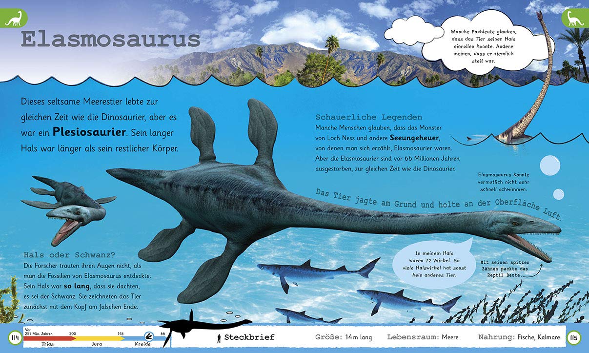- Steckbriefinformationen zu Zeitalter, Größe, Lebensraum und Nahrung.
