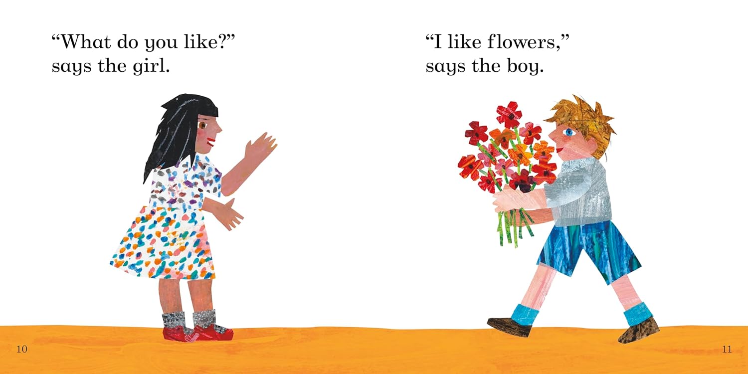 The girl and the boy are friends. What do they like?