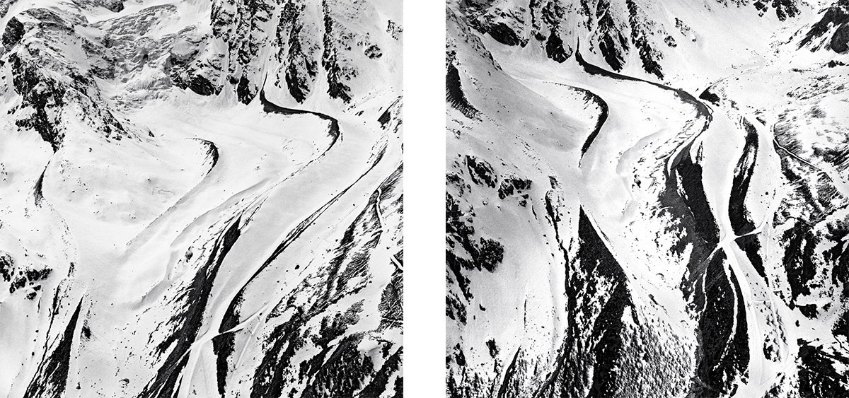 Begun in 2009, Daniel Schwartz’s latest photographic art project considers visible evidence of the disappearance of glaciers around the world as a starting point for reflections on climate history and the relationship between glacial cycles and human lifespan, on natural ecology and human ‘progress’. The project’s geographical field of interest extends from today’s Alpine cryosphere to areas of prehistoric glaciation in what is now the great plain of Switzerland, to as far afield as Pakistan (Karakoram range), Uganda (Rwenzori range) and Peru (Cordillera Blanca), all of which demonstrate dramatically shrinking glaciers at differing stages. Schwartz has travelled widely over many years, creating unique new views of rarely photographed equatorial African glaciers.