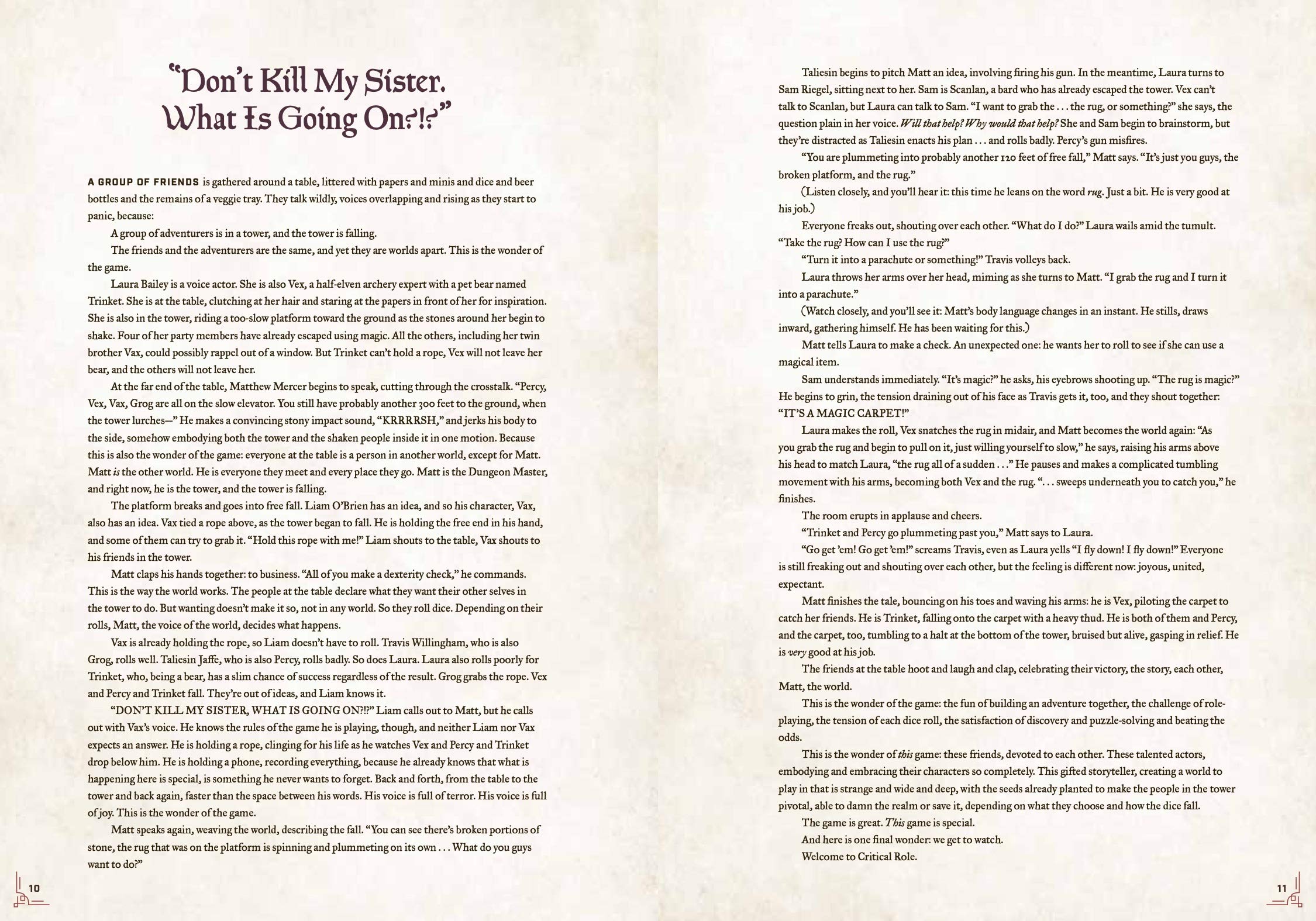 From its unassuming beginnings as a casual home game between friends to the role-playing phenomenon it is today, Critical Role has become the stuff of legend. These pages chronicle how a circle of friends who all happen to be talented voice actors built the most-watched tabletop role-playing livestream of all time.