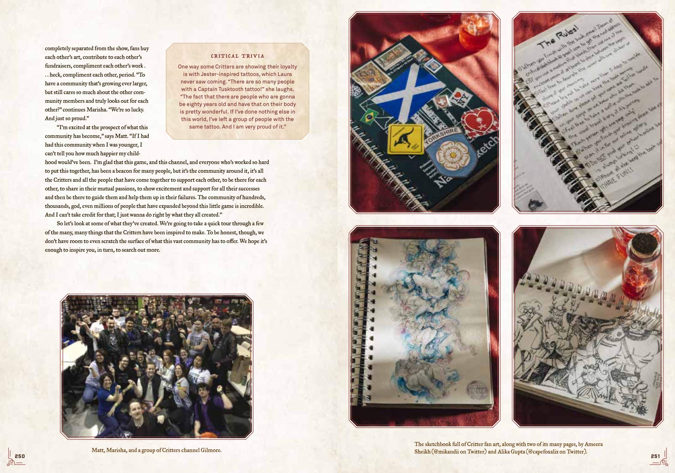 Discover dazzling new illustrations and richly written insights into the locations, characters, and adventures featured in the hundreds of episodes across Critical Role’s two campaigns, Vox Machina and the Mighty Nein. Go behind the scenes with archival photos and exclusive interviews with Dungeon Master Matt Mercer and the entire Critical Role cast as they explore their characters’ most triumphant moments and darkest hours. And celebrate the massive community of Critters who support and expand the show’s world through a highlighted tour of the crafts, cosplay, and art they create every day.