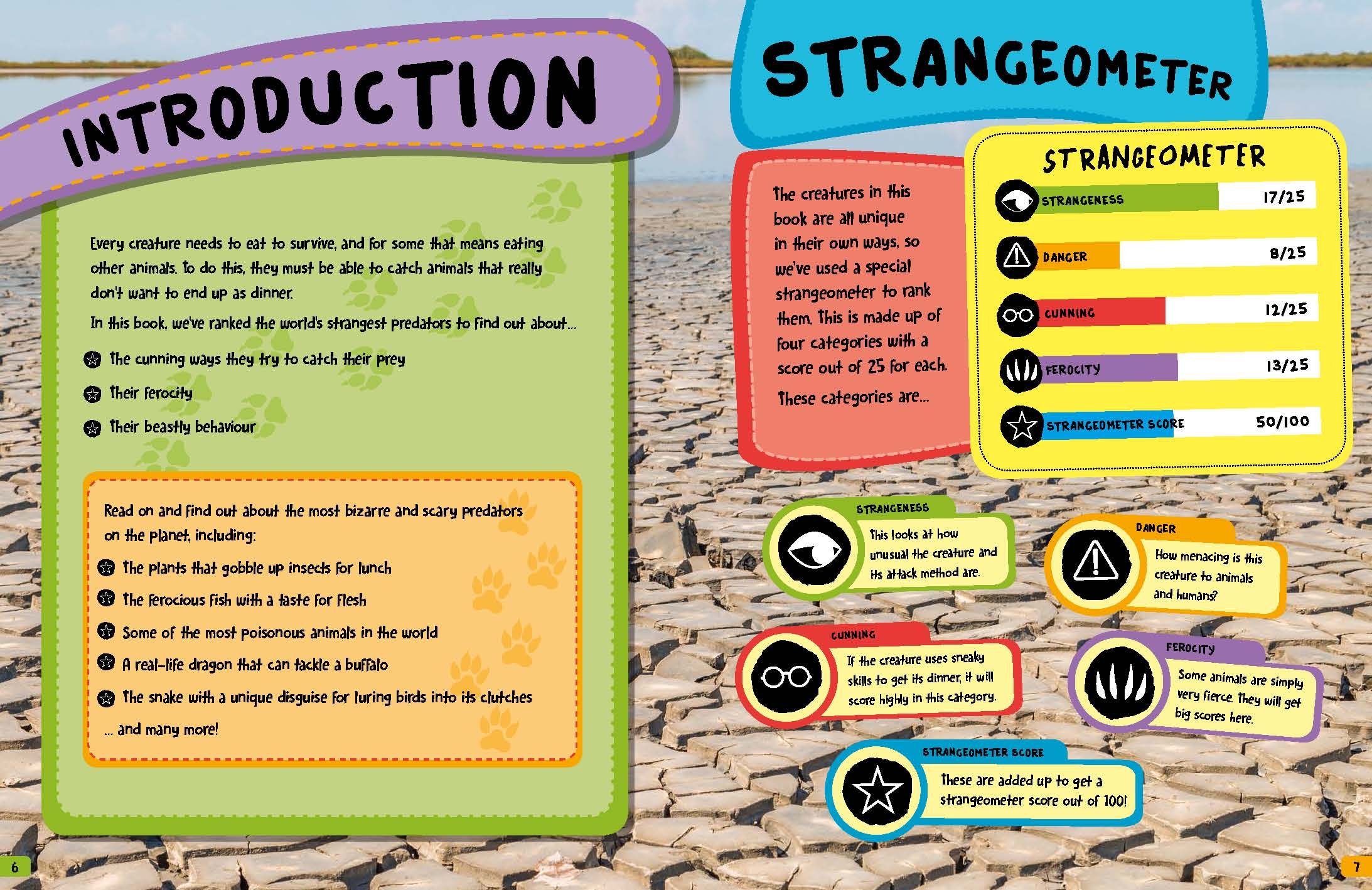 Every creature needs to eat to survive, and for many that means tucking into other animals! To do this, they've created clever ways to hunt and gobble up their unsuspecting 'lunch'. Inside World's Strangest Predators, kids will discover plants that feast on insects, a real-life dragon that can tackle a buffalo and the snake with a unique disguise for catching birds. And with our 'strange-o-meter', they can compare each creature's danger, cunning, ferocity and strangeness!