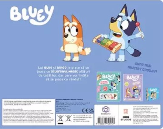 Cu Bluey- Xilofonul Magic, copiii resimt bucuria transmisă de minunatele desene animate în paginile unei cărți cu sunete. Părinții și copiii deopotrivă se regăsesc în poveste mulțumită personajelor care au un comportament firesc, dar amuzant, și descoperă împreună o nouă aventură educativă.