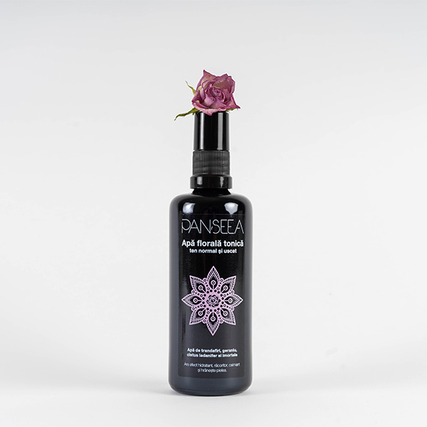 Mix natural exclusiv din ape florale organice, cu apă de trandafiri, geraniu, cistus și imortele.