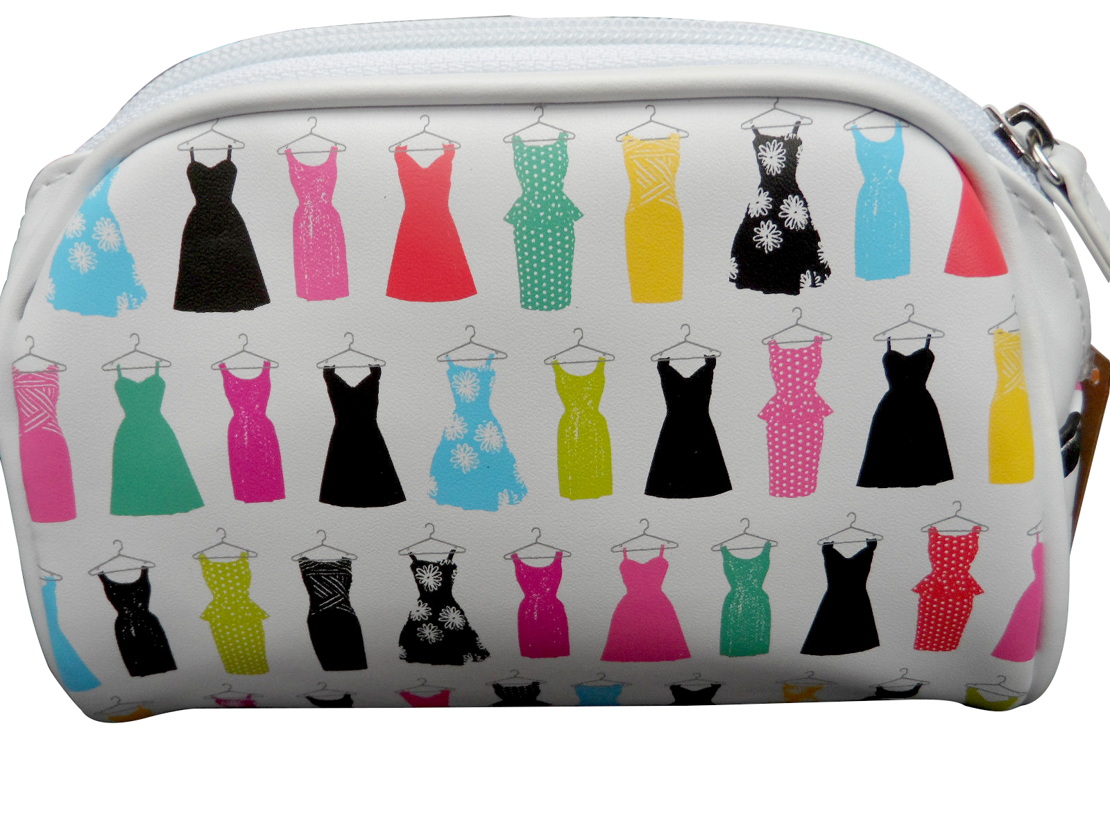 Geantă pentru accesorii cosmetice chic decorată cu rochii funky.
