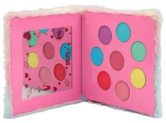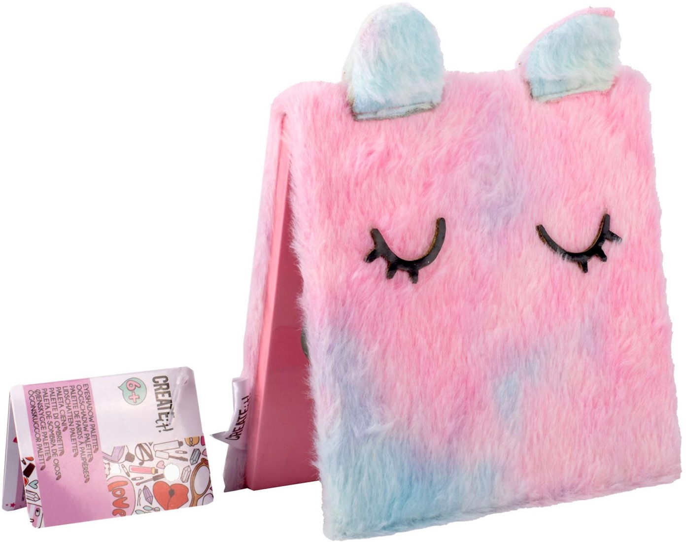 Paleta de machiaj are o husă pufoasă drăguță, cu ochi și urechi.