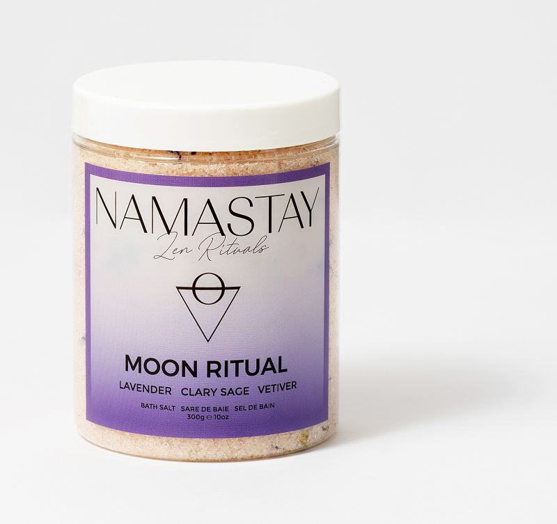 Sarea de baie Namastay Moon Ritual este ideală pentru seară, un ritual zen, liniștitor și calmant, un moment de conectare pentru un somn bun, adânc, reparator și revigorant al întregului corp. O formulare de uleiuri organice, special create pentru a liniști și a purifica, cu lavandă, salvie și vetiver. Sarea Epsom și sarea de Himalaya relaxează mușchii și întregul corp. Uleiul de măceșe este bogat în antioxidanți și vitamina C, având efect anti-îmbătrânire și radiant. Squalanul este provenit din ulei natural de măsline, cu o textură non-grasă, ideal pentru reechilibrarea PH-ului și hrănirea pielii. Uleiurile esențiale de lavandă și salvie au un efect de relaxare profundă pentru un moment liniștitor. Uleiul esențial de vetiver este un toner natural pentru corp, care aduce o senzație de relaxare spa în propria baie.