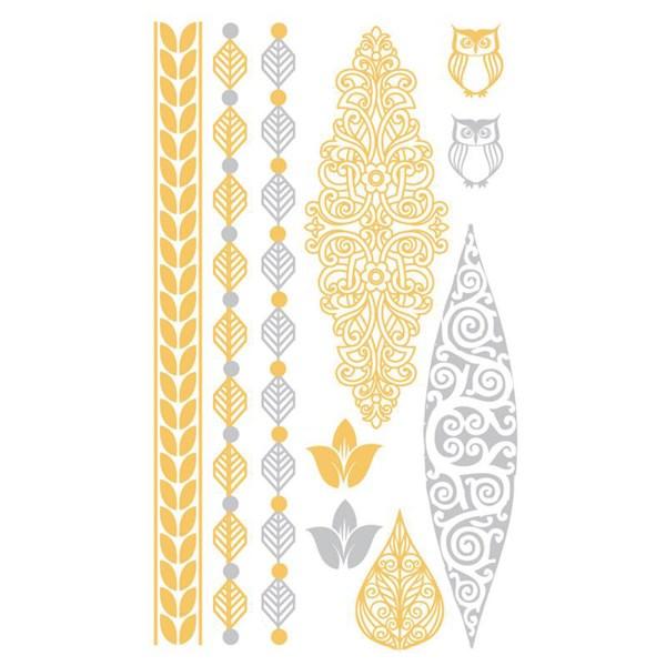 Tatuaje cu bufnite, culori auriu si argintiu.