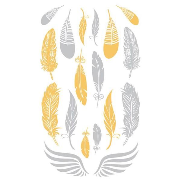 Tatuaje cu aripi si pene, culori auriu si argintiu.
