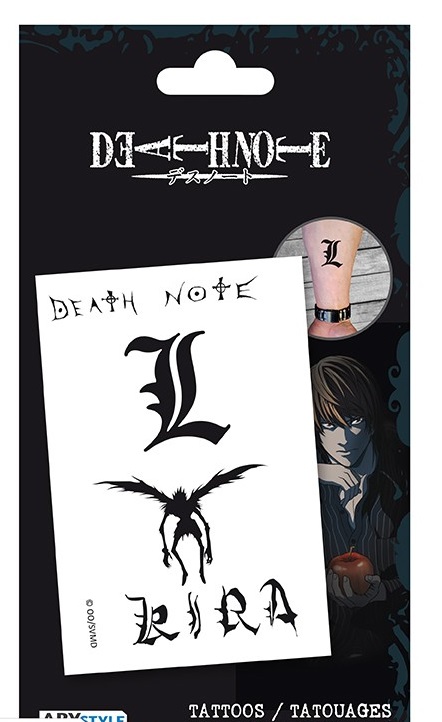Îți place Death Note? L, Kira sau chiar Ryuk, le avem pe toate cu acest minunat set de tatuaje Death Note de la ABYstyle!