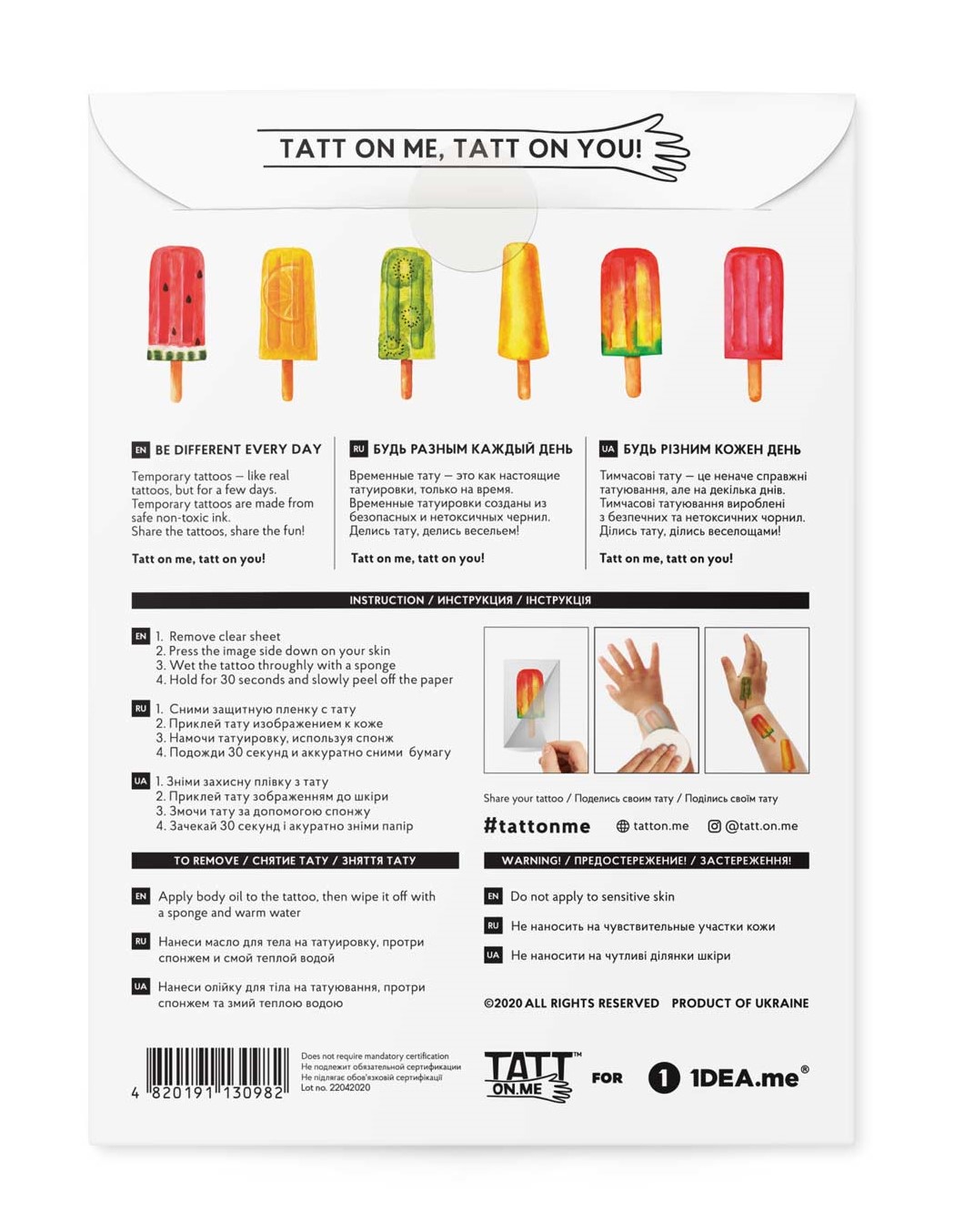 Setul conține 6 tatuaje și un burete pentru aplicare.