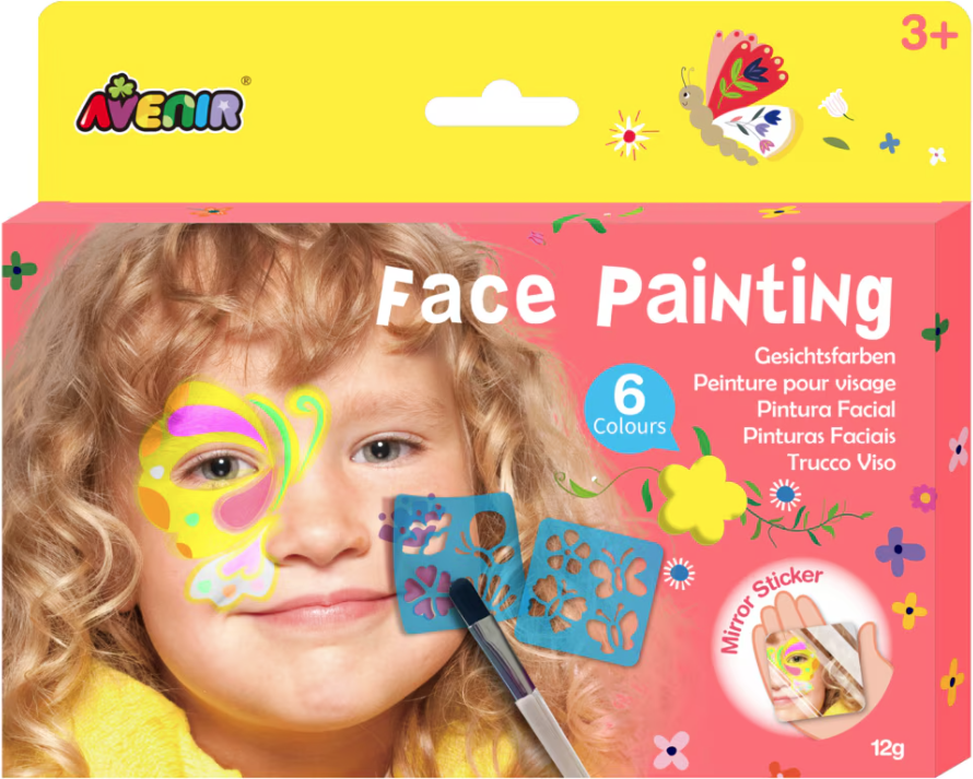 Transformați fiecare petrecere și moment de joacă într-o explozie de culoare și creativitate cu Trusa Make-Up Pictură față cu sabloane „Flori și Fluturi”!