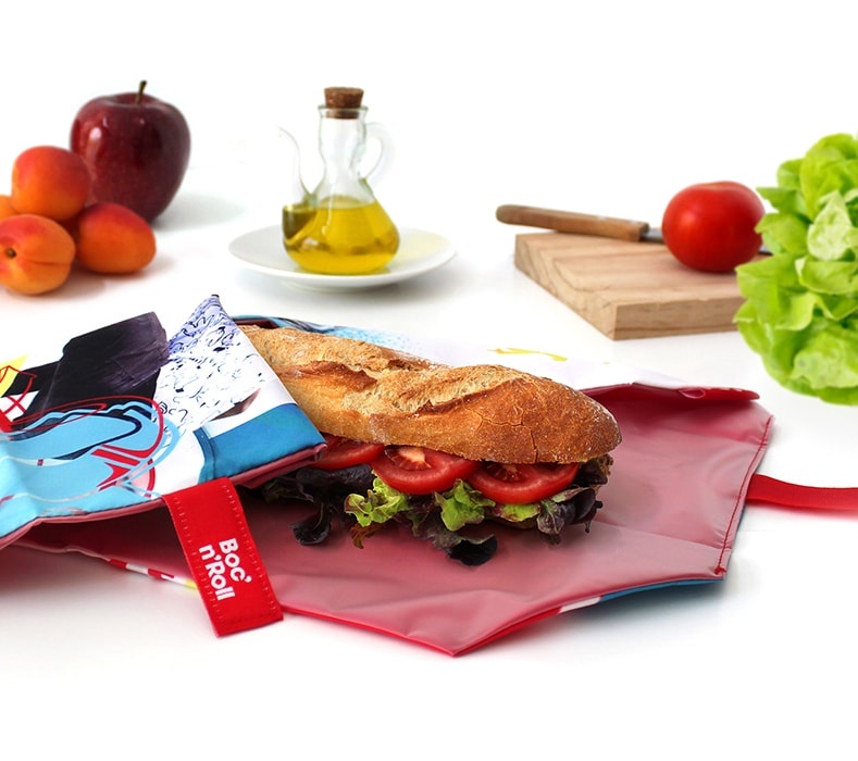 Aceast ambalaj reutilizabil este special dedicat gustărilor care te însoțesc oriunde te duci. Ambalajul are mărimea ideală pentru a transporta sandvișuri sau fructe. Este ușor de curățat și este fabricat din două straturi. Stratul exterior este confecționat din poliester 100% iar cel interior are în compoziție TPU și este rezistent la pete, fiind totodată și impermeabil.