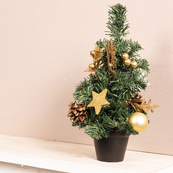 Brad artificial - Glitter Bauble, Stars, Cinnamon - Indoor - Gold