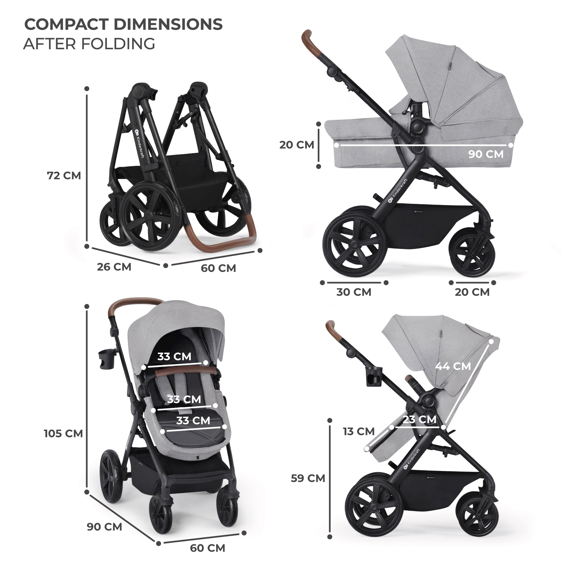 Carucior 3 In 1 Kinderkraft - A-Tour, Light Grey