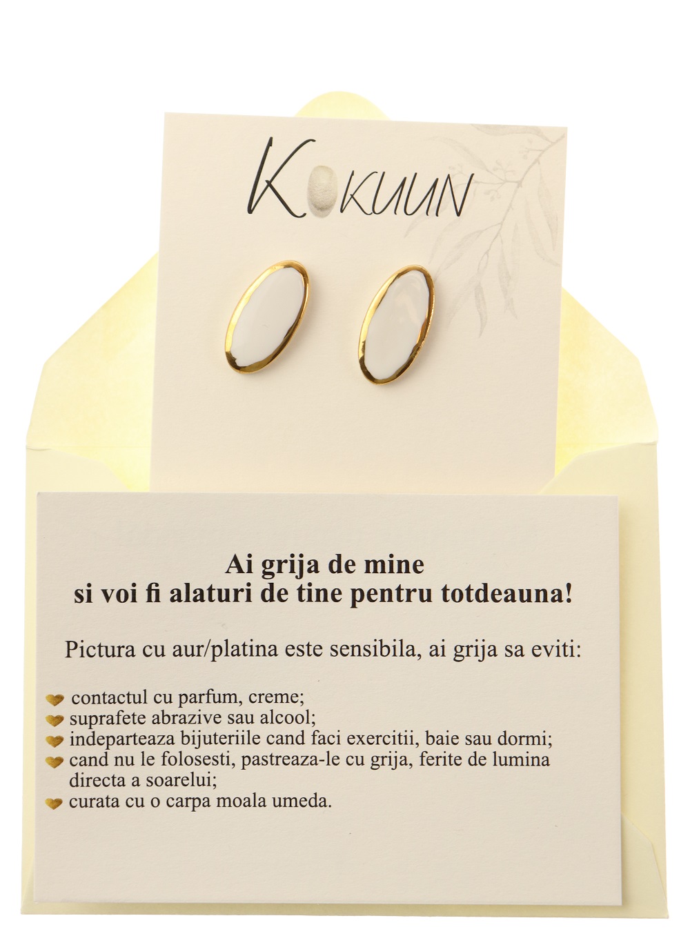 Porțelan ars la 1280° C , pictat manual cu aur coloidal.