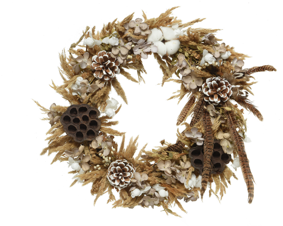 Coronita - Hydrangea, Lotus Flower, Cotton, Feather, Pinecones