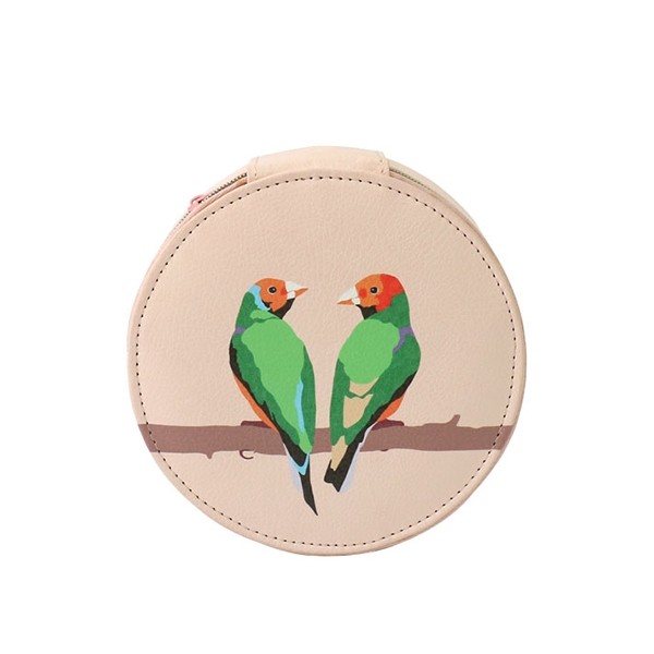 O cutie compactă pentru bijuterii, cu exterior din piele ecologică și interior din catifea moale.