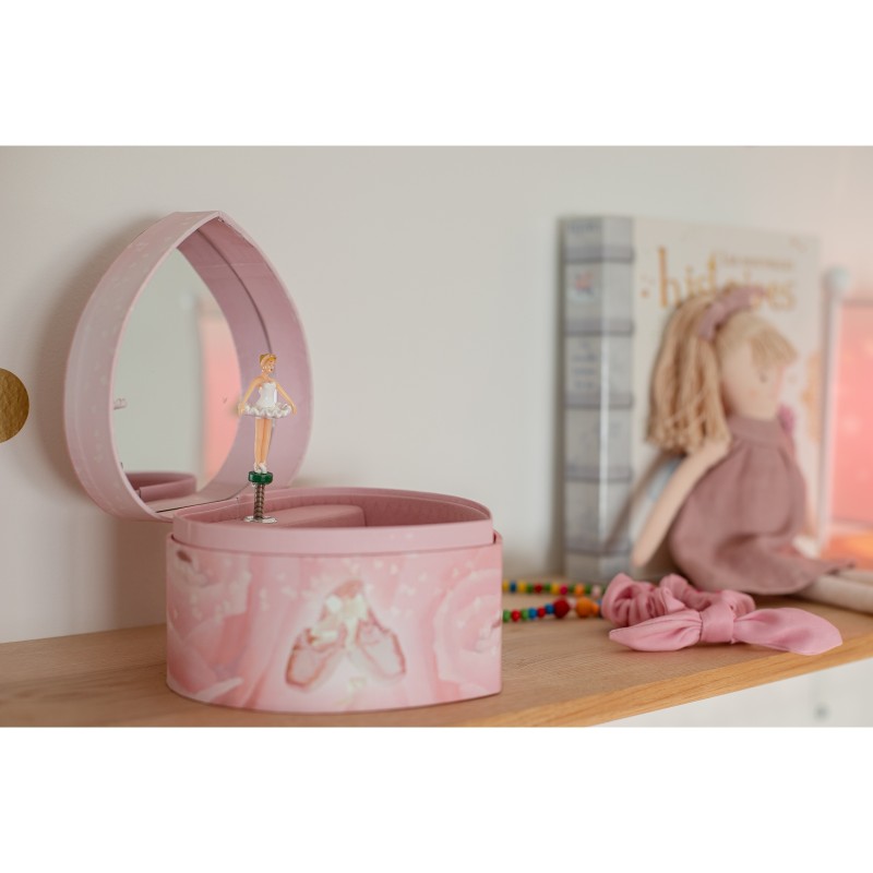 Cutiuța muzicală este potrivită pentru camera fetițelor care îndrăgesc muzica și balerinele.