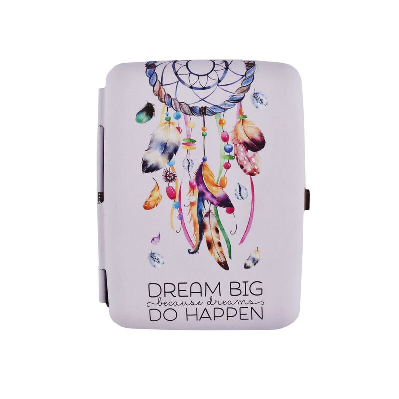 Această cutie vă permite să luați țigările preferate oriunde ați merge. Cutia este fabricată din tablă și este acoperită cu un strat subțire de cauciuc.