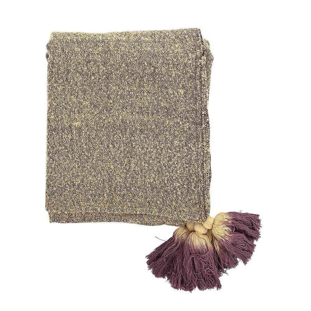 Cuvertură confecționată din acrilic 55% și bumbac 45%, culoare galbenă.