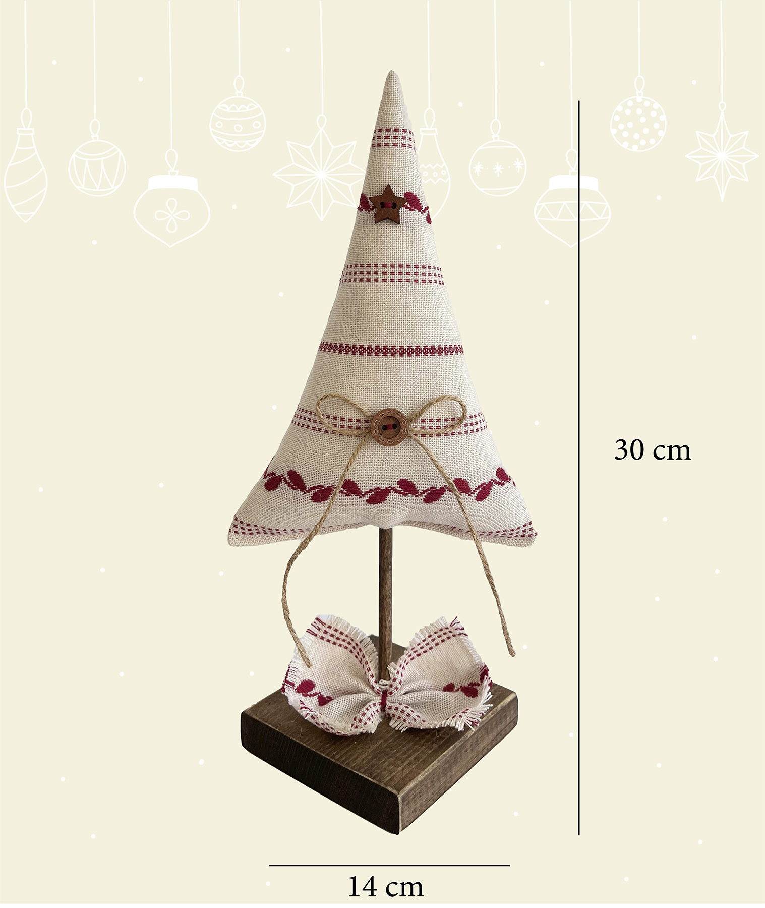 MARGÚ ATELIER creează articole unice handmade. Suntem mândri să vă prezentăm colecția noastră de brăduți de Crăciun, creați cu grijă în fiecare țesătură. Brăduțul textil Handmade VINTAGE JOY reprezintă o alegere perfectă pentru cei care caută un cadou sau o piesă de decor subtilă pentru sărbătorile de iarnă. Realizat cu atenție la detalii, fiecare element contribuie la un aspect autentic. Nasturii, împreună cu suportul din lemn patinat care asigură stabilitatea, adaugă o notă rustică, în timp ce fundița oferă rafinament și eleganță. Este o alegere potrivită pentru cei care apreciază simplitatea și caută autenticitate în decorul sărbătorilor.