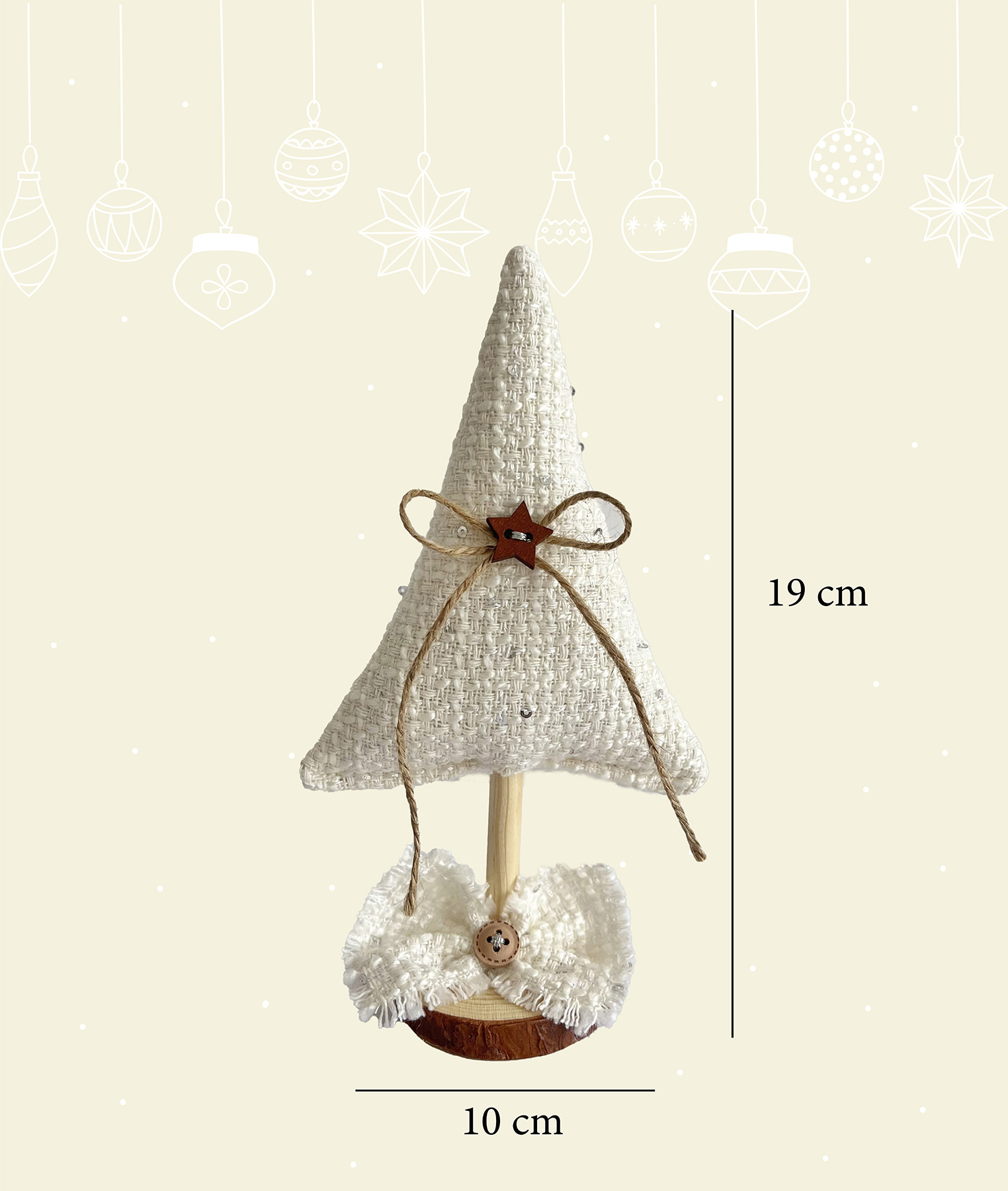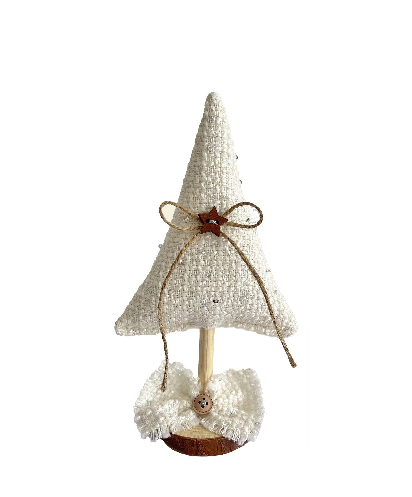 MARGÚ ATELIER creează articole unice handmade. Suntem mândri să vă prezentăm colecția noastră de brăduți de Crăciun, creați cu grijă în fiecare țesătură. Brăduțul textil Handmade WINTER CHIC reprezintă o alegere perfectă pentru cei care caută un cadou sau o piesă de decor subtilă pentru sărbătorile de iarnă. Realizat cu atenție la detalii, fiecare element contribuie la un aspect autentic. Nasturii, împreună cu suportul din lemn care asigură stabilitatea, adaugă o notă rustică, în timp ce fundița oferă rafinament și eleganță. Este o alegere potrivită pentru cei care apreciază simplitatea și caută autenticitate în decorul sărbătorilor.