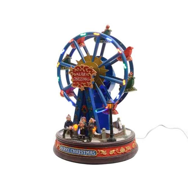 Acest ornament este prevăzut cu lumină LED și odată pornit, roata începe să se învârtă și să cânte.