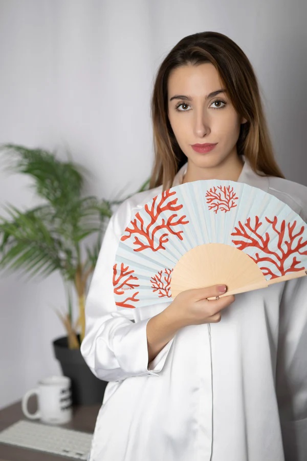 Evantai cu următoarele dimensiuni atunci când este deschis: 42,5 cm lungime și 23 cm înălțime.