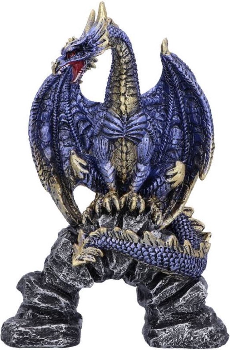 Disponibilă ca parte a colecției de articole pentru cadouri de la Nemesis Now, această figurină dragon Acko impresionează prin detalii. Un dragon albastru metalizat, cu accente aurii pe gheare, aripi și coarne, poate fi văzut cocoțat deasupra unui arc de stânci. Cu ochi roșii pătrunzători și o privire amenințătoare, se pregătește să își lanseze primul răget înfricoșător pentru a se face cunoscut tuturor creaturilor din apropiere. Turnată în cea mai fină rășină și pictată manual cu atenție, această figurină dragon este completarea perfectă pentru orice decor fantezist.