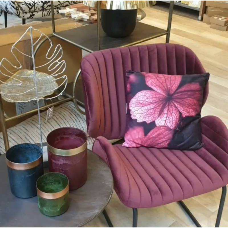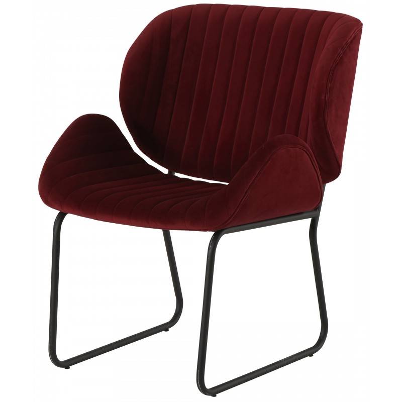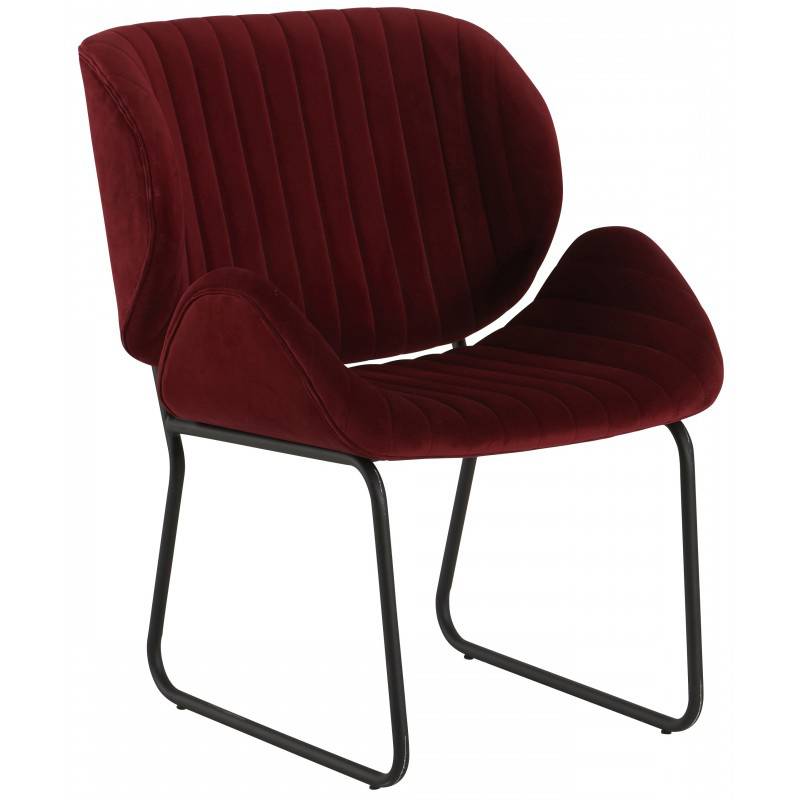 Fotoliul cu design contemporan Luvana , de culoare grena, din catifea, foarte modern, cu umplutura din spuma.