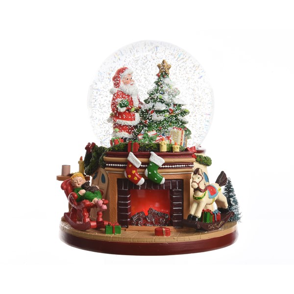 Glob cu zăpadă artificială și lumină LED. Îndată ce este pornit acesta începe să cânte.