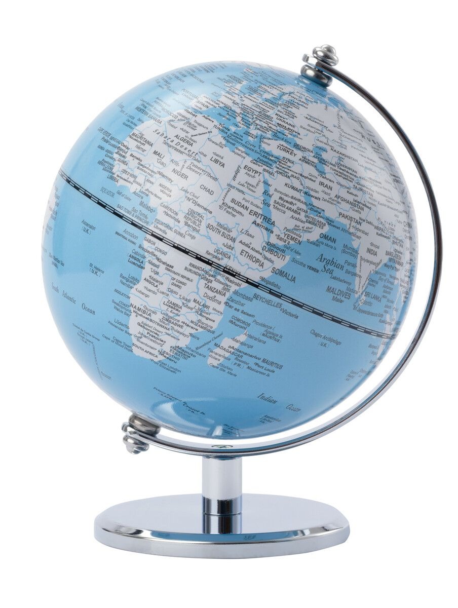 Prezintă o bază metalică cromată, globul pământesc fiind bicolor - albastru/alb.