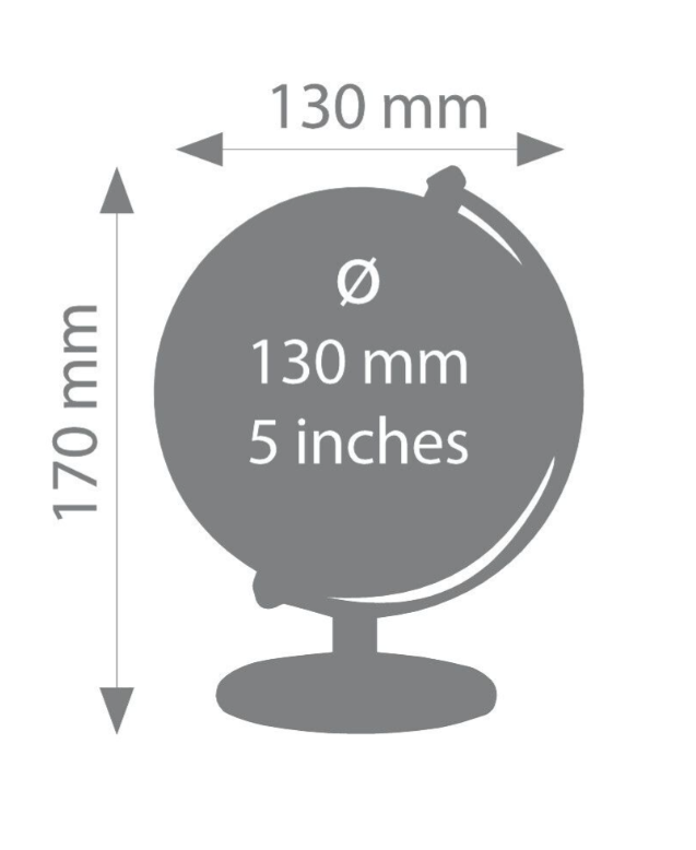 Globul pământesc Gagarin este un mini glob care are un diametru de 13 cm.