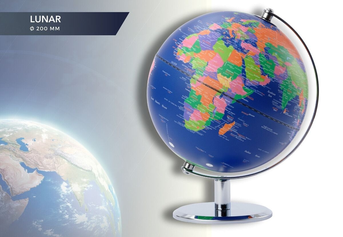 Globul pământesc Lunar este un glob cu hartă topografică care are un diametru de 20 cm.