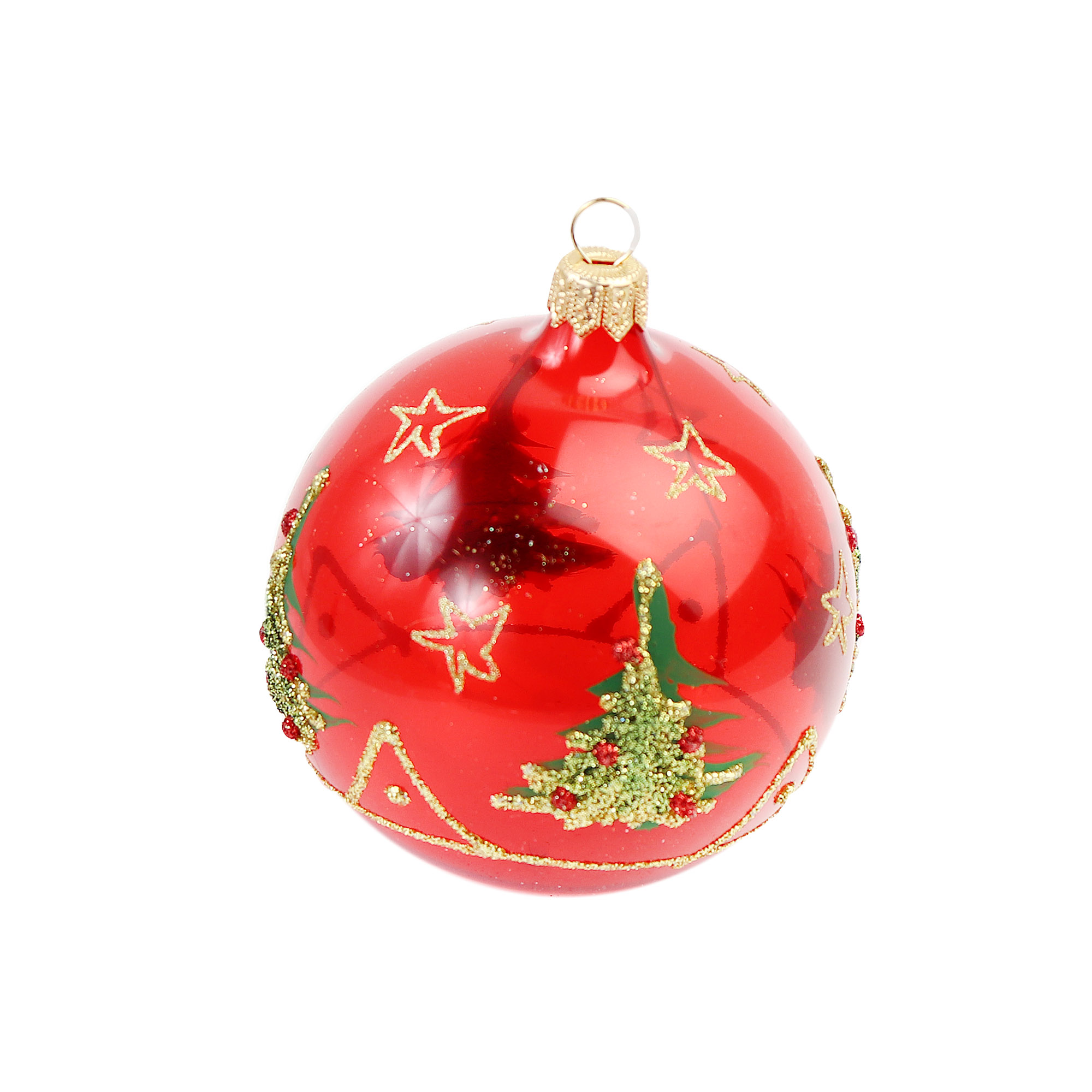 Glob - Transparent rosu cu braduti, diametru 8 cm.